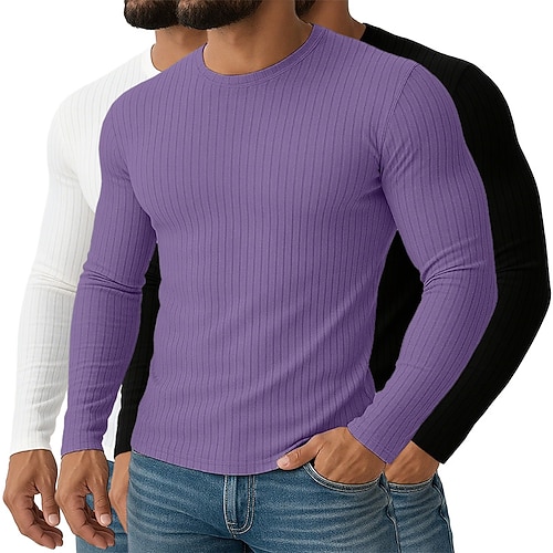 Per uomo Maglietta Canotta Muscolare Maglietta a Maglia a Coste Camicia a Maniche Lunghe Manica Lunga Girocollo Primavera Autunno Tutte le stagioni Semplice Testurizzato Striscia di Fossa Moda