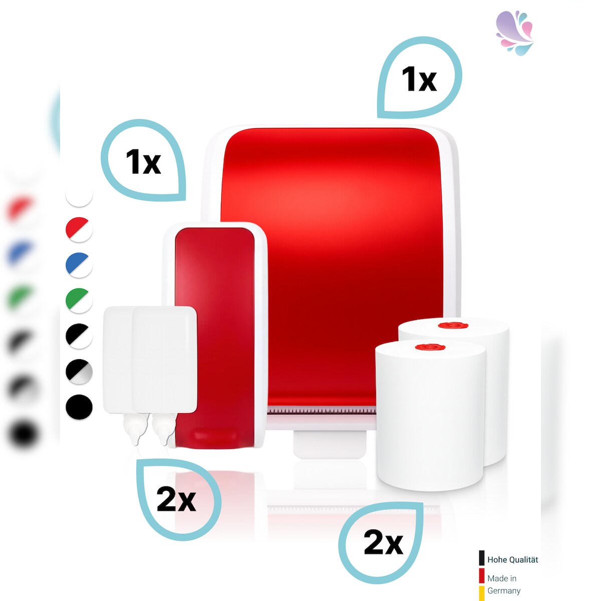 Blanc HYGIENIC KOMPLETT-SET Waschraum MANUELL: Handtuchrollenspender AUTOCUT + 2 TAD Handtuchrollen + Schaumseifenspender MANUELL+ 2 Kartuschen