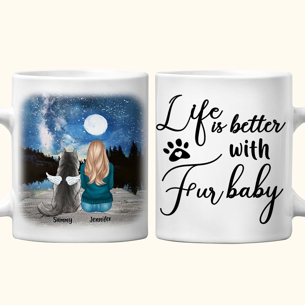 Taza de Cerámica Personalizada "Life Is Better with Fur Baby" Blanco y Color Interior con Nombre 11/15 oz Regalo de Cumpleaños para Amantes de los Per