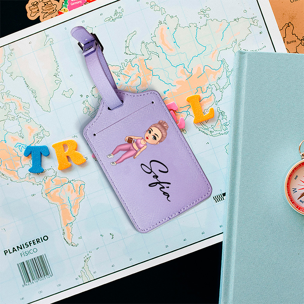 Personalizada de dibujos animados Deportes Chica PU Etiqueta de equipaje de cuero con el nombre de accesorios de viaje Regalo de cumpleaños para los amantes del deporte