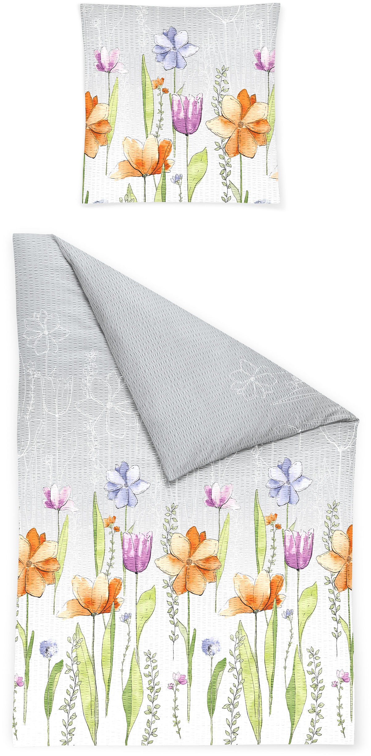 Bettwäsche BIERBAUM "3155", silber, B/L: 155cm x 220cm, , Seersucker, B/L: 80cm x 80cm, Seersucker, Obermaterial: 100% Baumwolle, Bettwäsche, Seersucker, 100 % Baumwolle, pflegeleicht, bügelfrei