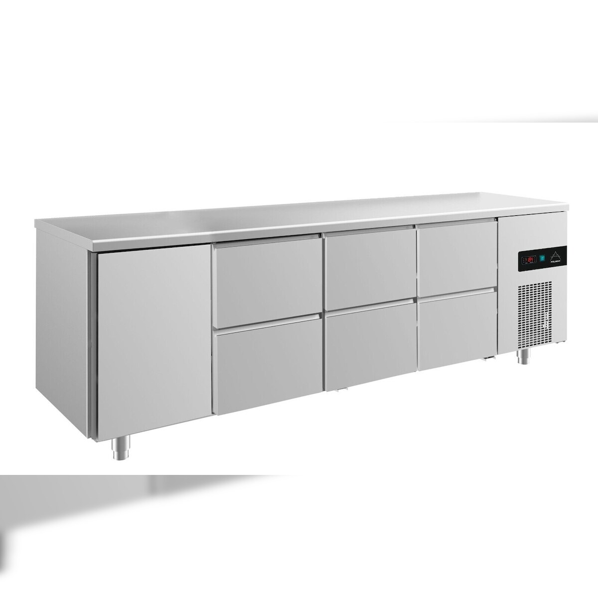 Gastro Kühltisch 1 Tür 6 Schubladen Umluftkühlung 2330x700x850mm -2/+8°C 623 L