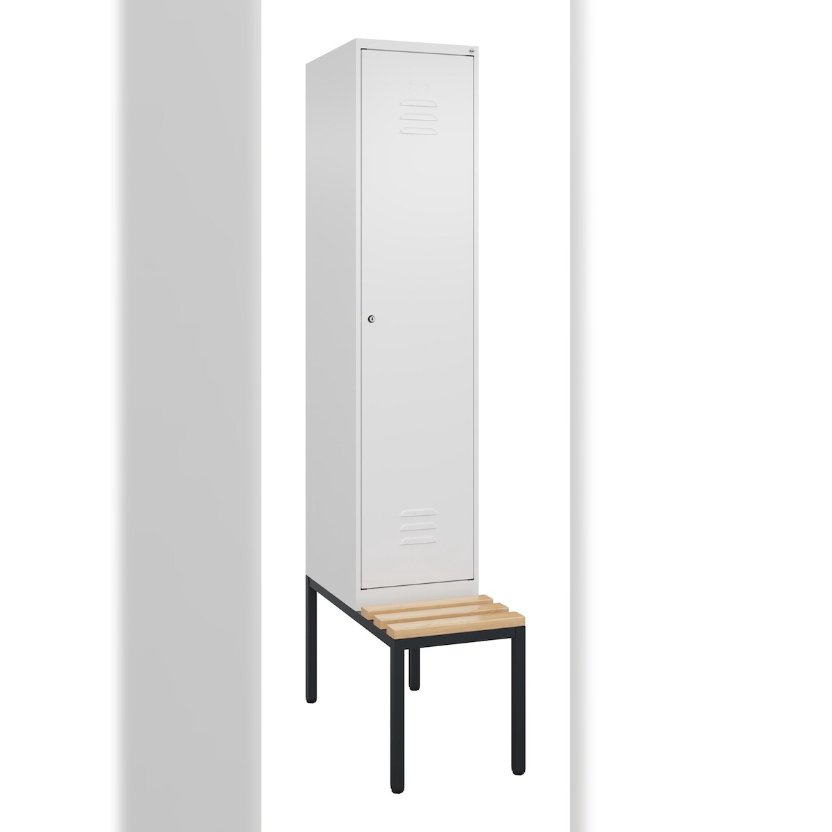 C+P Spind Classic PLUS, Buche untergebaute Sitzbank 1 Abteil, HxBxT 212x40x82cm, Zylinderschloss, Verkehrsweiß von PROREGAL