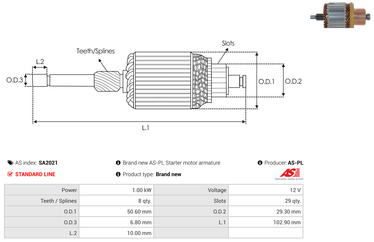 AS-PL Anker, Starter SA2021 Universal 12V 50,60mm für NISSAN 23310-EN200