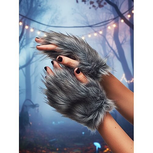 Guanti da donna con zampe di lupo mannaro pelose – accessori per cosplay e costumi di Halloween, soffici guanti con artigli di mostro per feste e travestimenti