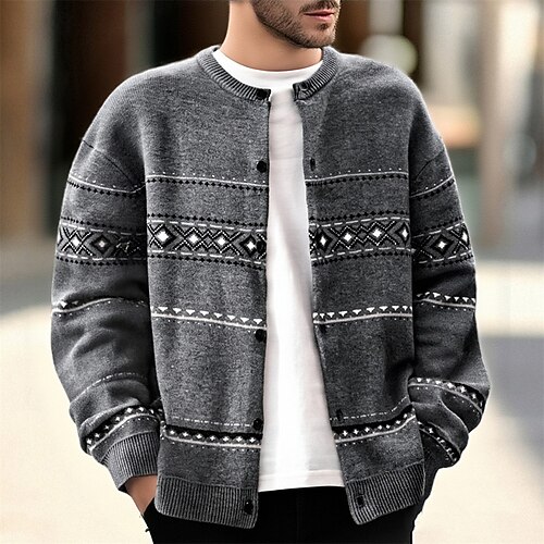 Per uomo Maglioni di Natale Maglione per le feste Cardigan Maglione Corto Maglione a maglia A Coste Maglia Top Regolari Bottonato Geometrico Girocollo Moda Classico Vacanza Abbigliamento quotidiano