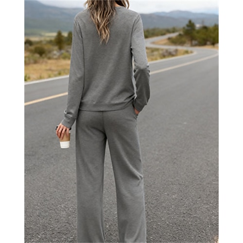 Per donna Elegante Caldo Attivo Set di Pantaloni Bolero Top Manica Lunga Girocollo Tinta unica A righe Arricciato Coulisse Patchwork All'aperto Vacanza Lavoro Nero Verde militare Verde Autunno