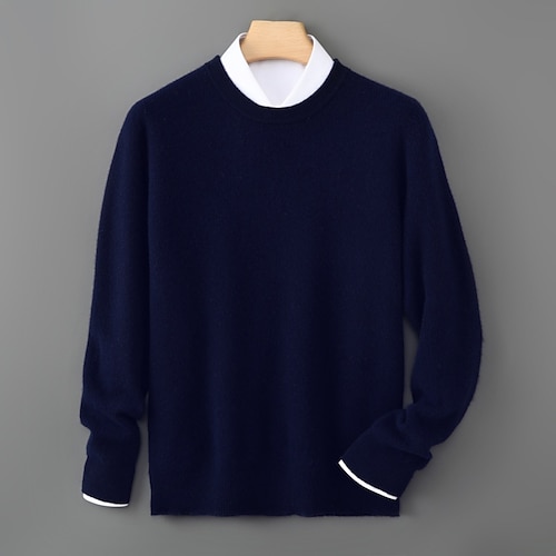 Per uomo Felpa Maglione di lana Maglione A Coste Maglia Top Regolari Lavorato a maglia Semplice Girocollo Moda Streetwear Casuale Abbigliamento quotidiano Abbigliamento Autunno Inverno Blu Cammello S