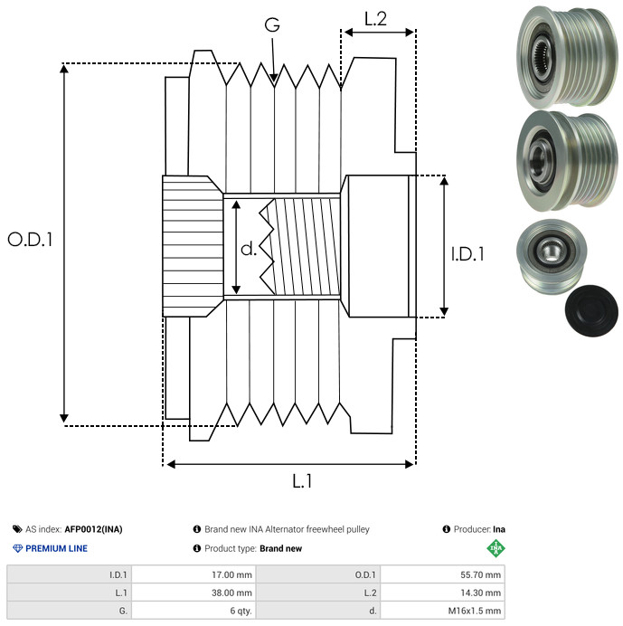 AS-PL Generatorfreilauf AFP5008(INA) für MITSUBISHI NISSAN 23151-EB301 23151-EB30A A252C564FE