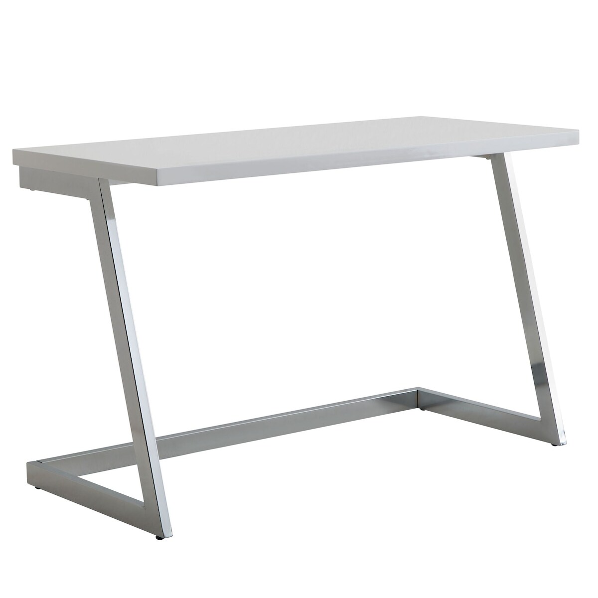 KADIMA DESIGN Schreibtisch 120x55x76 cm Hochglanz Weiß / Silber PC-Tisch mit Metallbeine, Design Computertisch, Home-Office Bürotisch, Konsolentisch