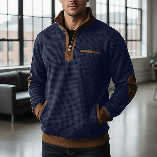 Per uomo Maglia Felpa a nido d'ape Felpa con cappuccio Maglione Felpa con zip corta Nero Blu marino Colletto Mao Semplice Patchwork Blocco di colore Sport Outdoor Casuale Quotidiano Streetwear Cool