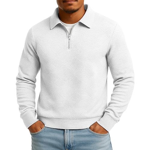 Per uomo Jacquard Maglia Maglione Felpa con zip corta Nero Bianco Blu marino Cachi Grigio Bavero Semplice Testurizzato Casuale Quotidiano Sport Outdoor Streetwear Cool Abbigliamento Sportivo