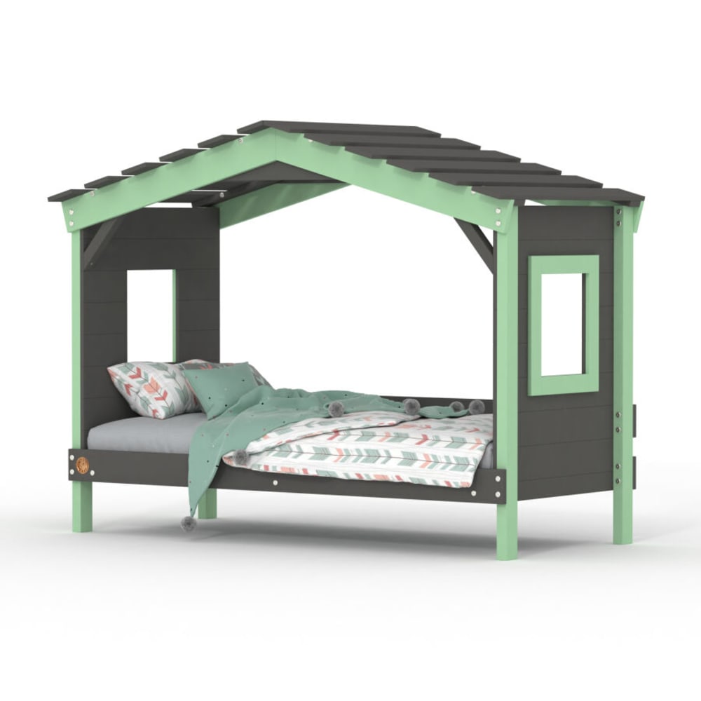 Letto a casetta in pino massiccio, Antracite/Verde