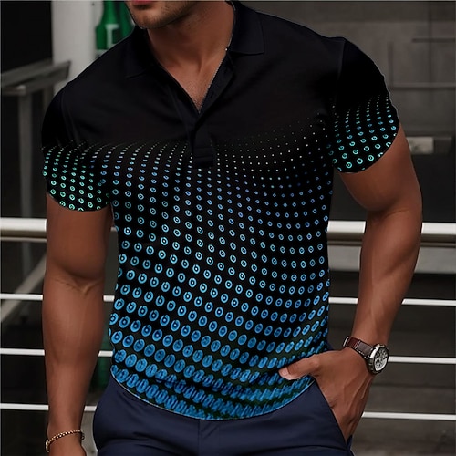 Per uomo Geometrico Linea Polo Manica Corta Magliette polo Camicie con Colletto Abbigliamento Sportivo Casual All'aperto Athleisure Abbigliamento quotidiano Tasca Stampa 3D Bottoni Estate Nero Blu