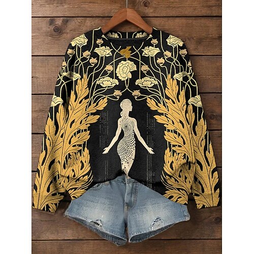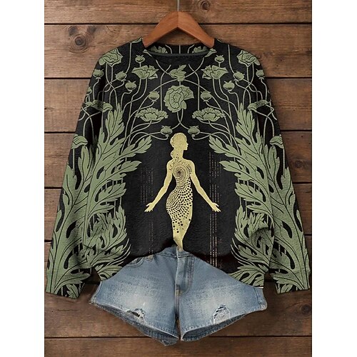 Per donna Felpa Pullover Floreale Grafico Casual Manica Lunga Girocollo Top Regolari Streetwear Abbigliamento Quotidiano Casuale Giallo Verde scuro Verde Primavera Autunno Inverno