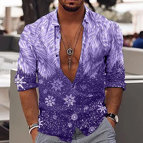 natale uomo scena natalizia camicie stampate collo fiocco di neve giallo rosso blu viola stampa 3d abbigliamento casual da esterno manica lunga stampa 3d abbottonato abbigliamento moda classico