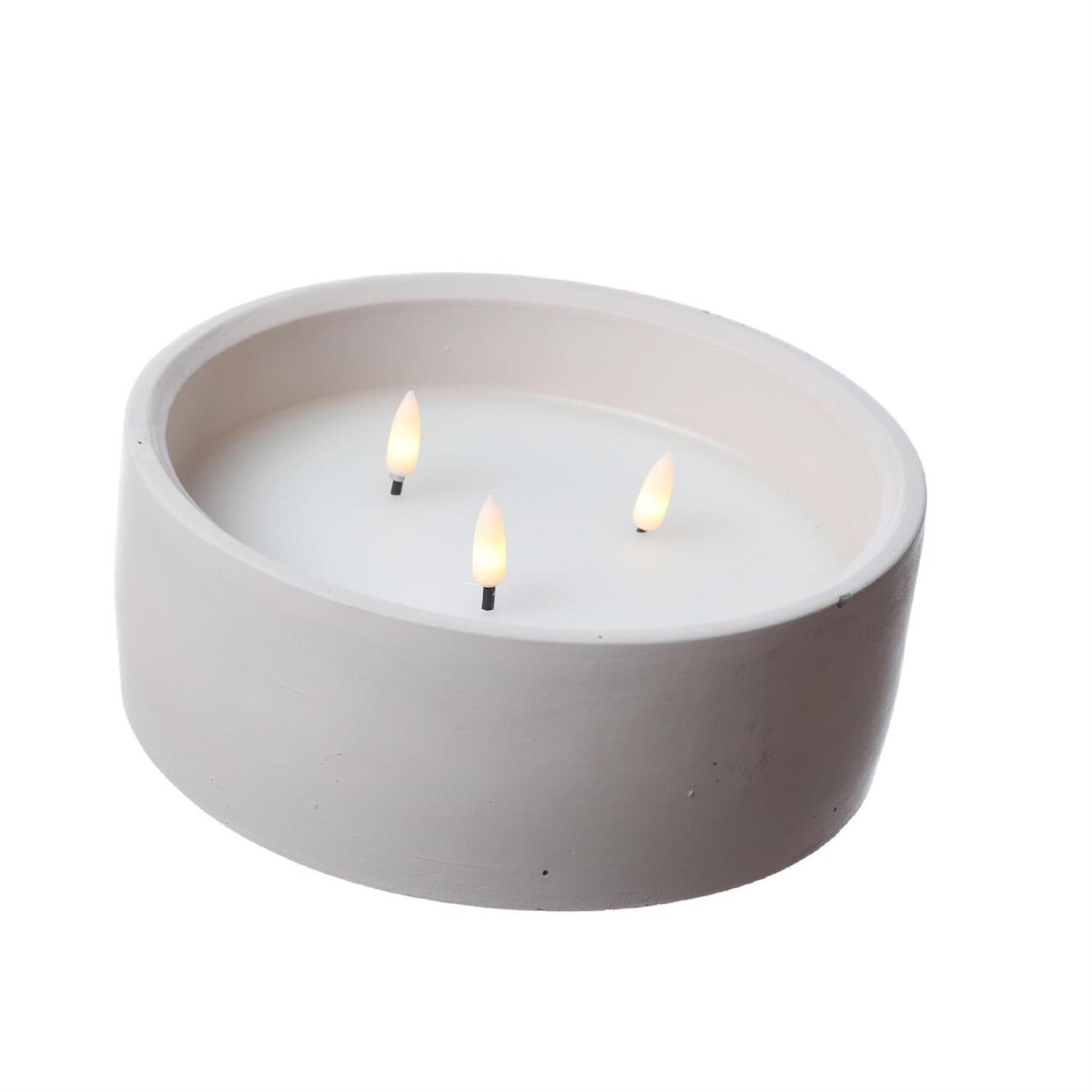XXL LED Kerze in Betonoptik Zement Wachs 3 Docht Flamme Timer D: 20cm weiß