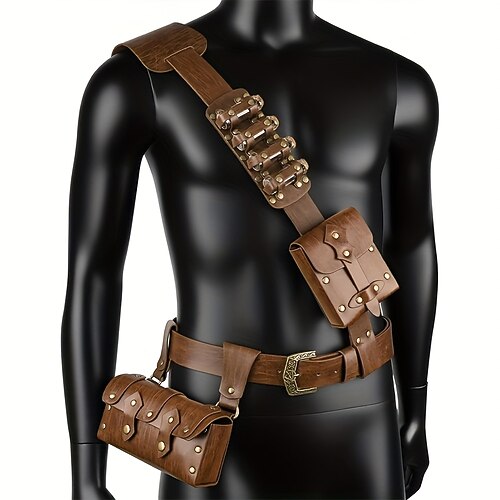 Retrò Vintage Punk Gotico Medievale Costume Cosplay Mascherata Cintura in Vita Guerriero Cavaliere Vichingo Cavaliere Celtico Ranger Costume Per uomo Per donna Celtico Vichingo Halloween Carnevale