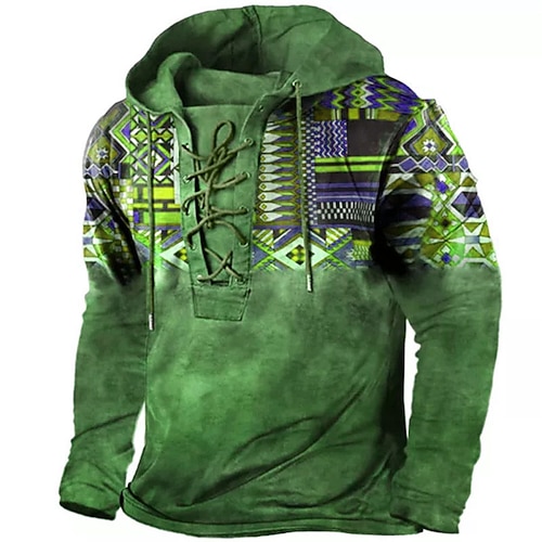 Per uomo Etnico Felpa con Cappuccio Felpe con cappuccio Felpa Designer Casual Boho Grande e Alto Manica Lunga Con Cappuccio Quotidiano Sport Outdoor Sportivo Ferie Blu Giallo Rosso Marrone Verde