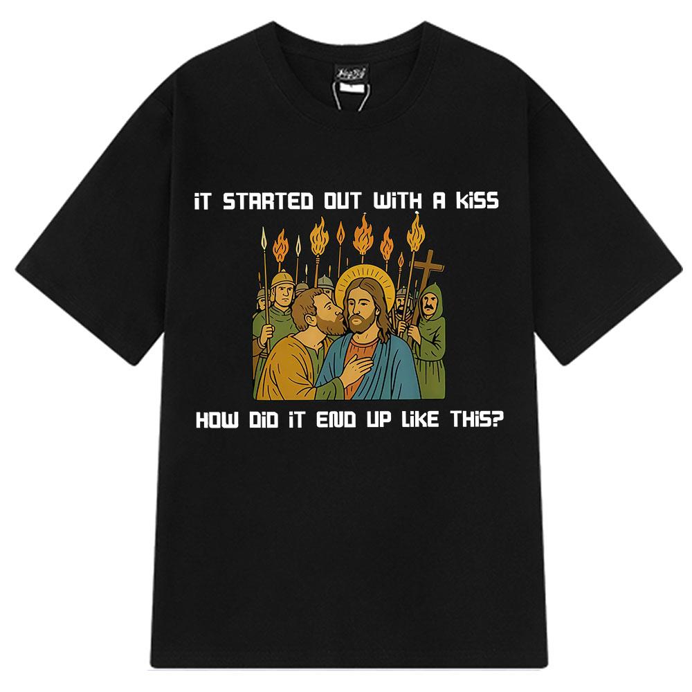 It Started Out with A Kiss How Did It End Up Like Unisex This Funny Meme T-Shirt Summer Cotton Harajuku Casual Unisex T-shirts cm