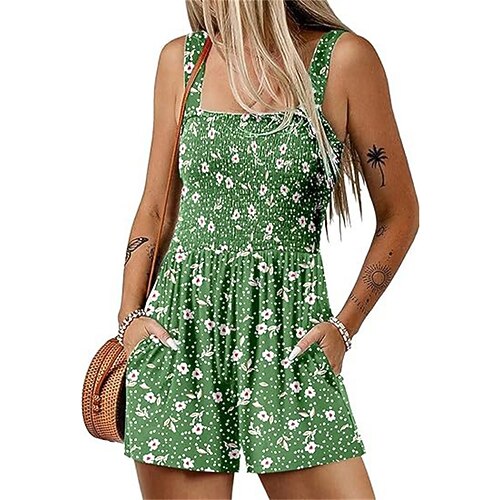 Tuta da donna attiva grafica senza maniche a gamba larga con tasche bottoni vacanza vestibilità morbida nera bianca viola estate