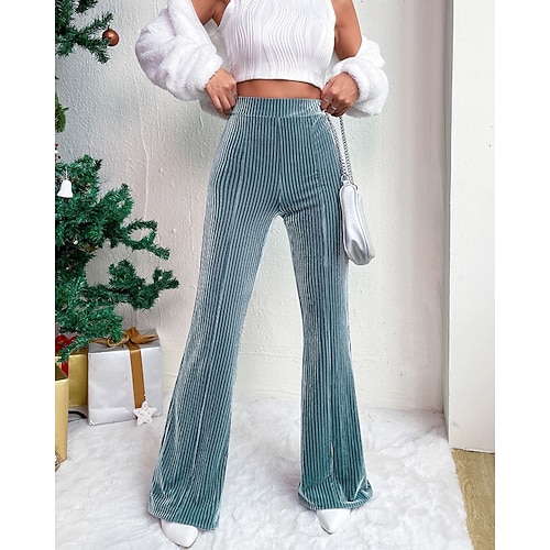 Per donna Gamba larga Pantaloni in velluto a coste Pantaloni Eleganti Streetwear Casual Lunghezza intera Naturale Semplice Elastico in vita Comodo All'aperto Vacanza Uscire Vinaccia Blu pavone Rosa