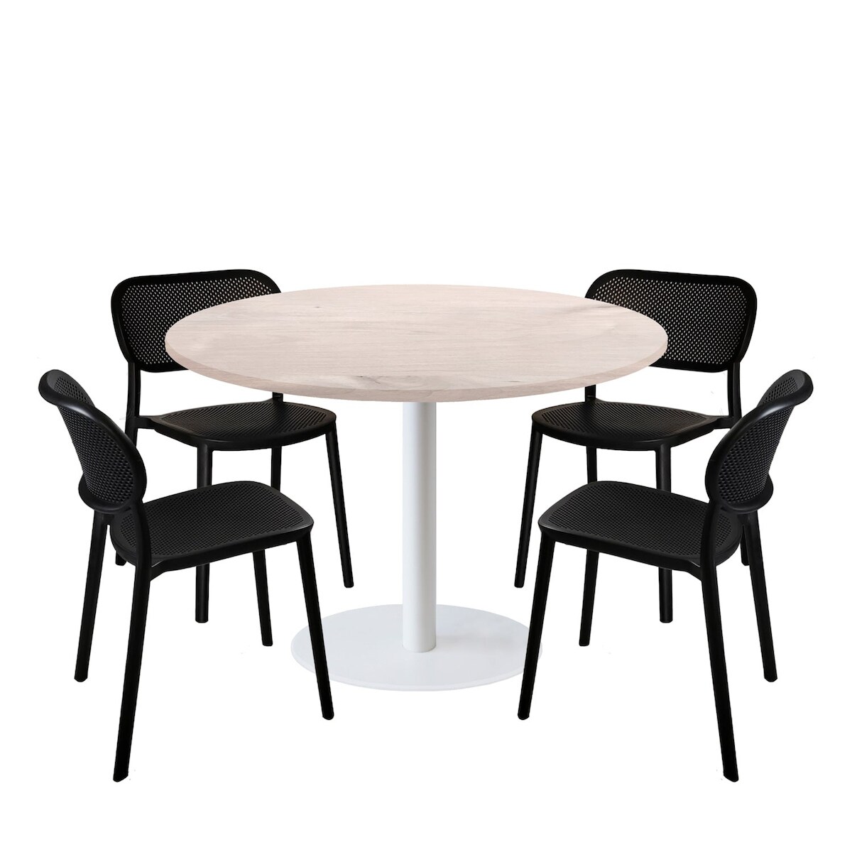 Restootab Esstisch-Set Rome weiß Ø120cm und 4 Stühle - Modell Eiche Bosco