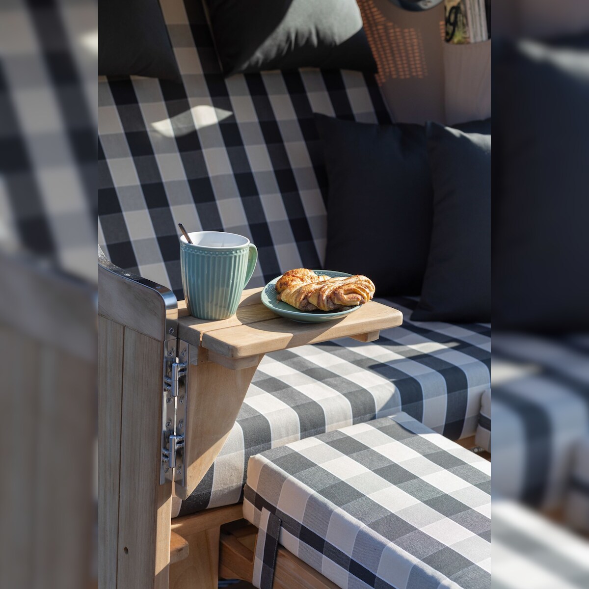 Mr. Deko Strandkorb - bene living - Ammersee Teak Bullauge - PE grau - Modell 505 - Zweisitzer inkl. Liftersystem