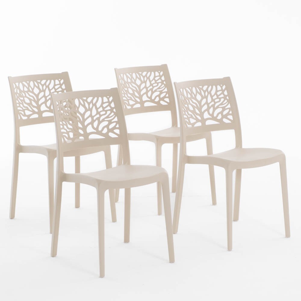 RATTATAN 4er-Set stapelbare Stühle aus Polypropylen mit Glasfasern für Außenbereich und Garten, Bar und Restaurant, Küche modernes Design - FLORA - Creme