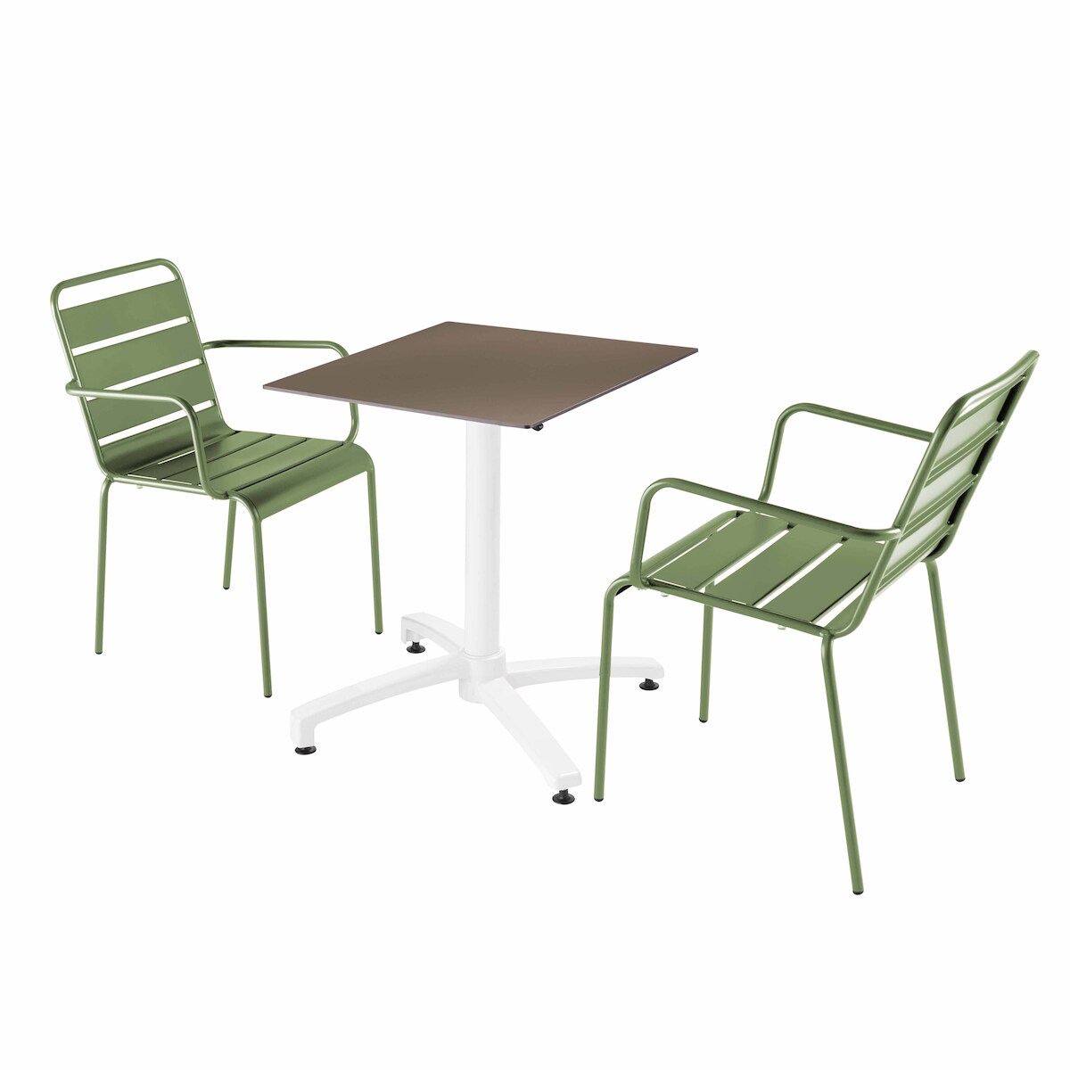Oviala Business Set Terrassentisch aus Laminat in Taupe und 2 Sesseln in Kaktusgrün