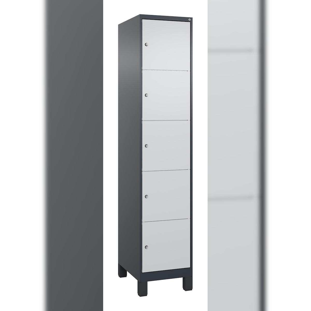 C+P Schließfachschränke Classic PLUS, Füßen, 5 Abteile, HxBxT 195x40x50cm, Zylinderschloss, Anthrazit/Hellgrau von PROREGAL