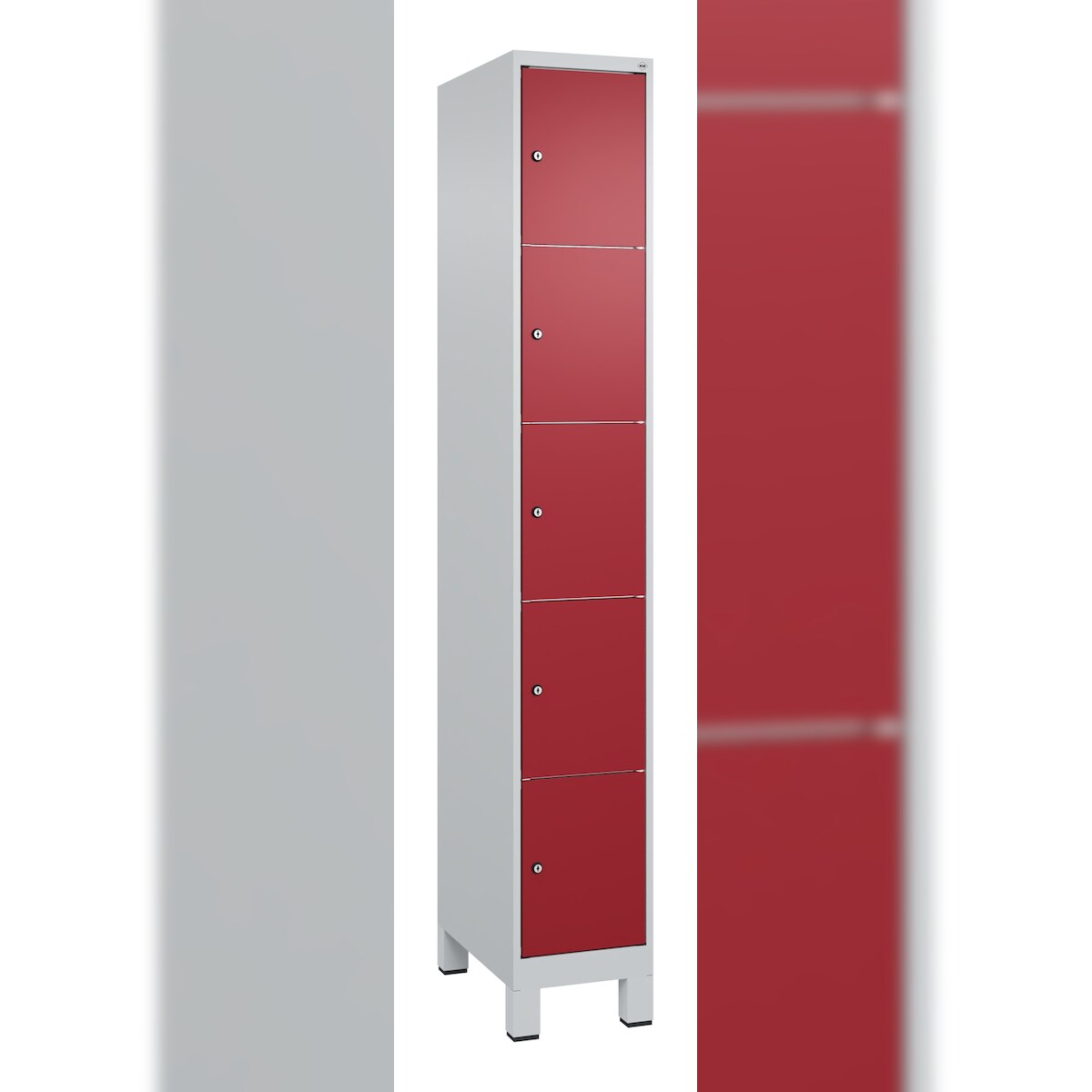 C+P Schließfachschränke Classic PLUS, Füßen, 5 Abteile, HxBxT 195x30x50cm, Zylinderschloss, Hellgrau/Rubinrot von PROREGAL
