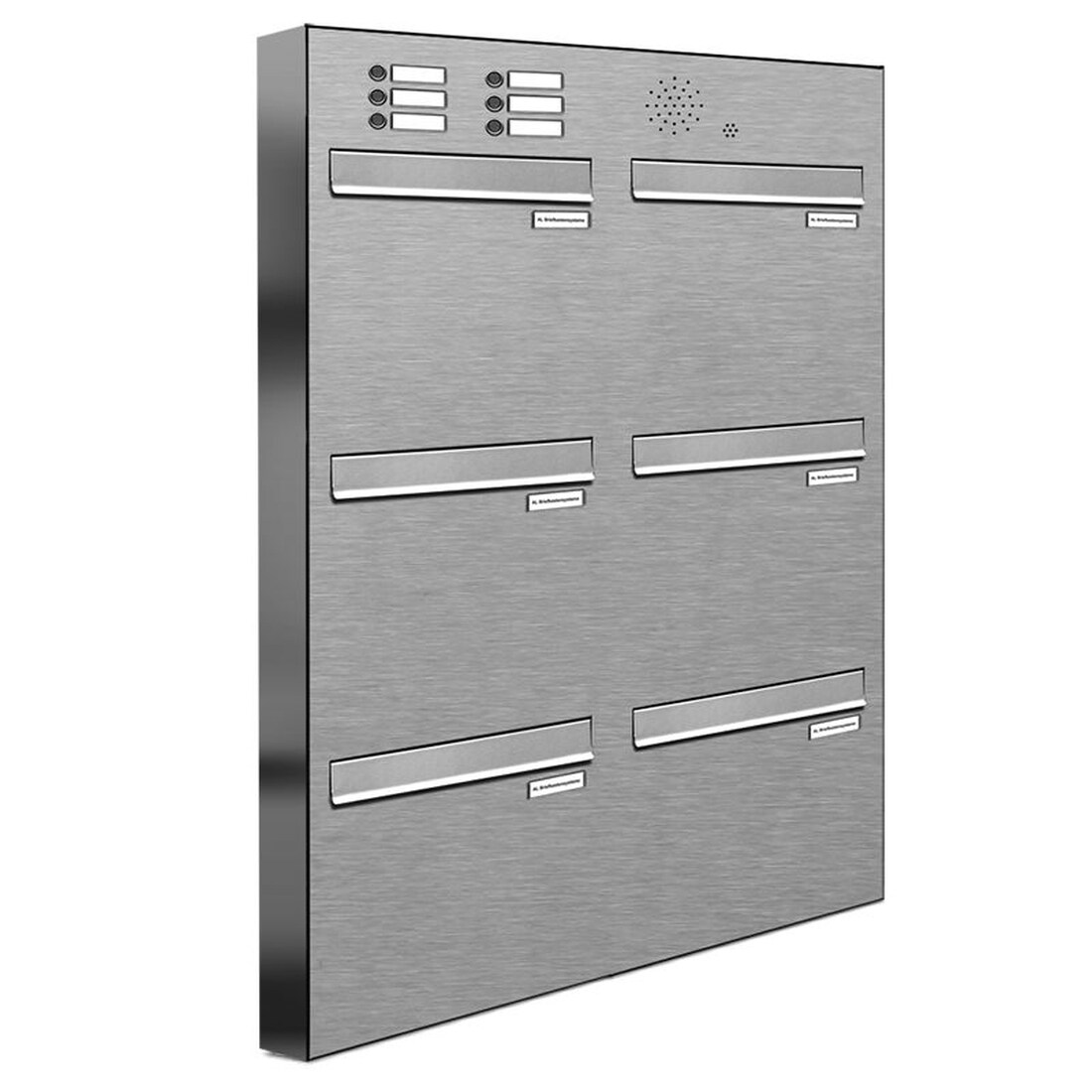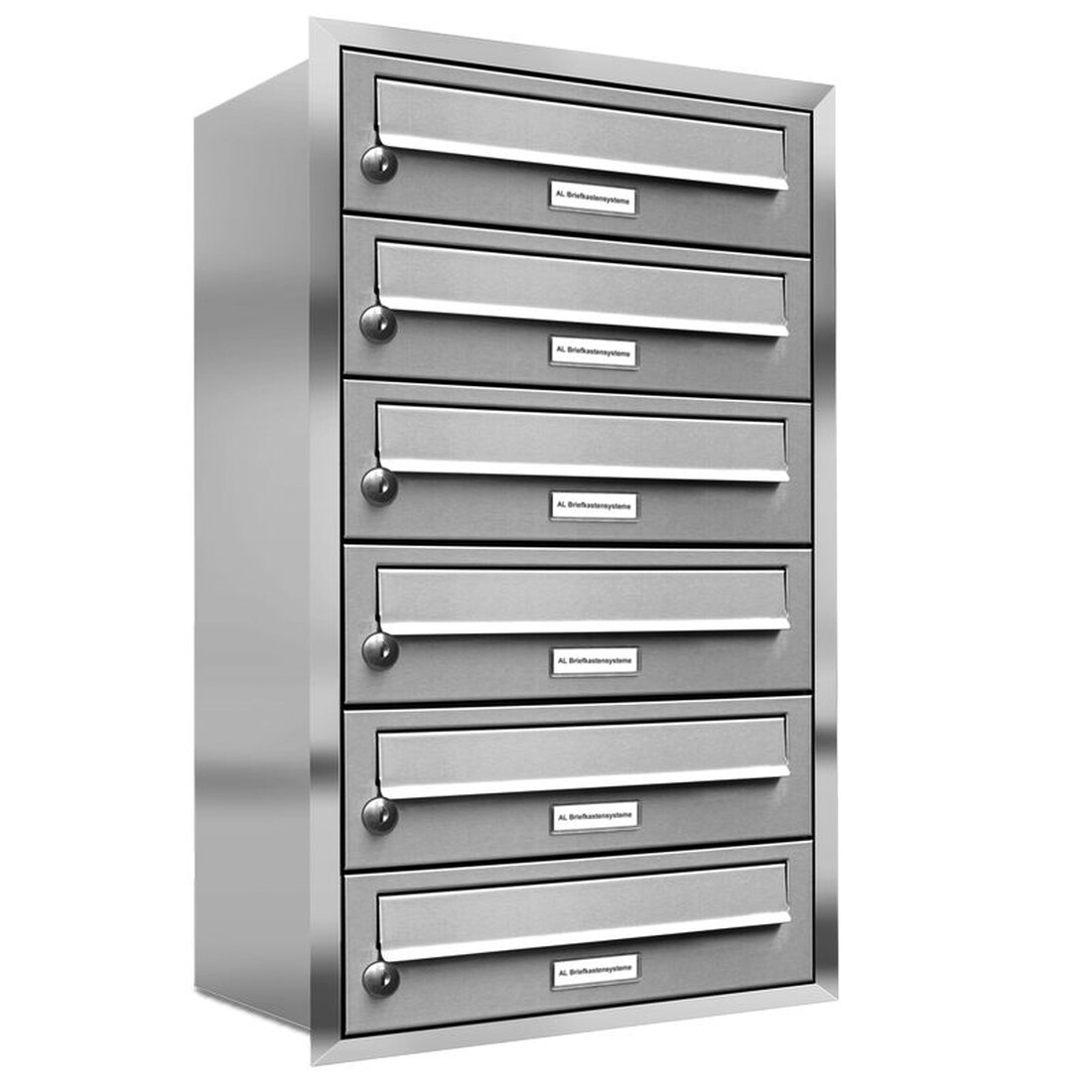 AL Briefkastensysteme 6 Fächer Premium Edelstahl Durchwurf Briefkasten Anlage mit Klingeln, Post A4, robust, wetterfest, Artikelnummer: 331V6DZ2KS