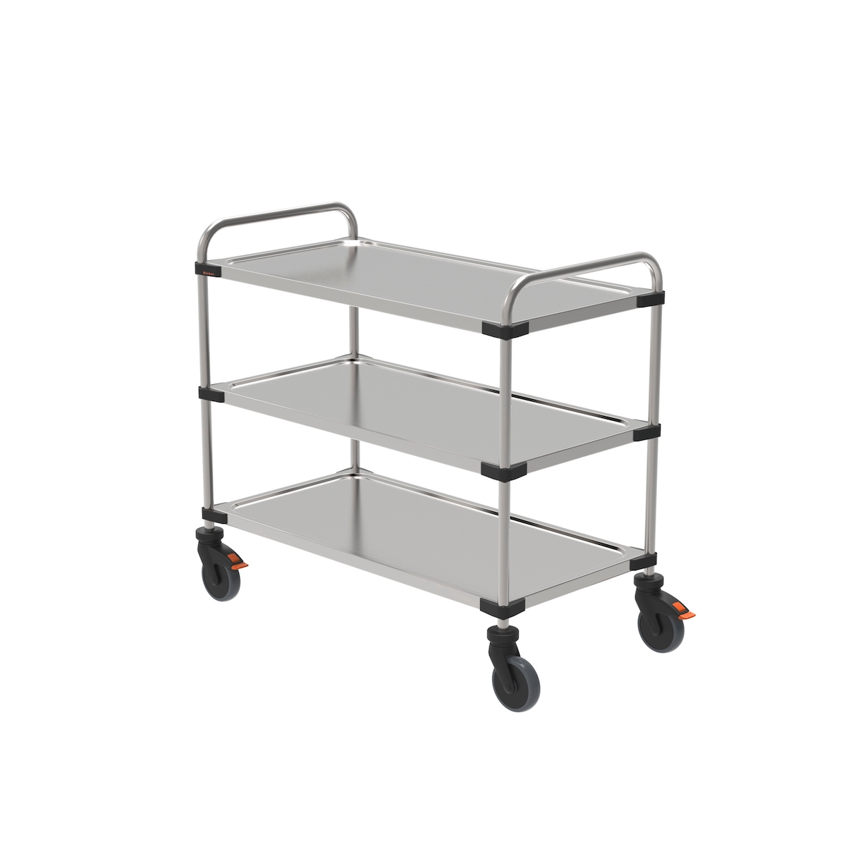 Rieber Servierwagen aus Edelstahl, leichte Ausführung, Rundrohr-Schiebebügel, 3 Borde, Bordgröße 1000 x 500 mm, montiert
