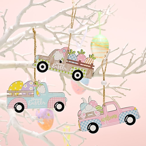 Confezione da 3 ornamenti pasquali in legno da appendere all'auto, piccolo ciondolo a forma di coniglietto per decorazioni pasquali, accessori per auto per le vacanze primaverili, perfetti per