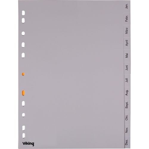 Viking Jan - Dez Alphabetische Register DIN A4 Grau 12-teilig PP (Polypropylen) 11 Löcher