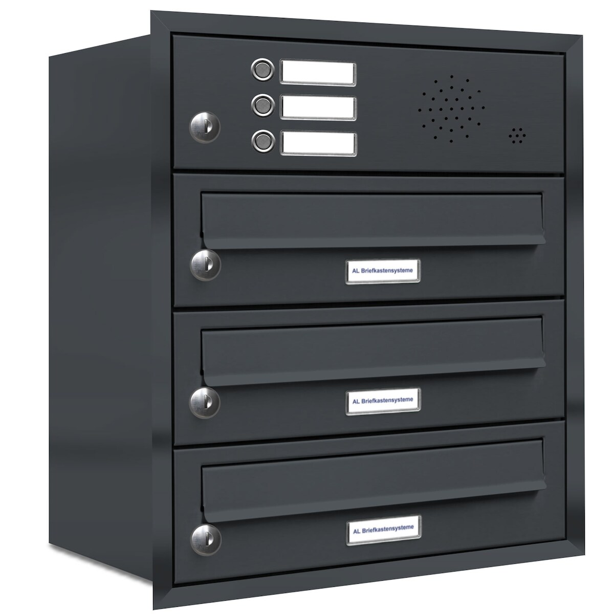 AL Briefkastensysteme 3 Fächer Premium Unterputz Briefkasten Anlage mit Klingeln RAL 7016 Anthrazit Grau, A4, wetterfest, Artikelnummer 132P3U1KSP7016
