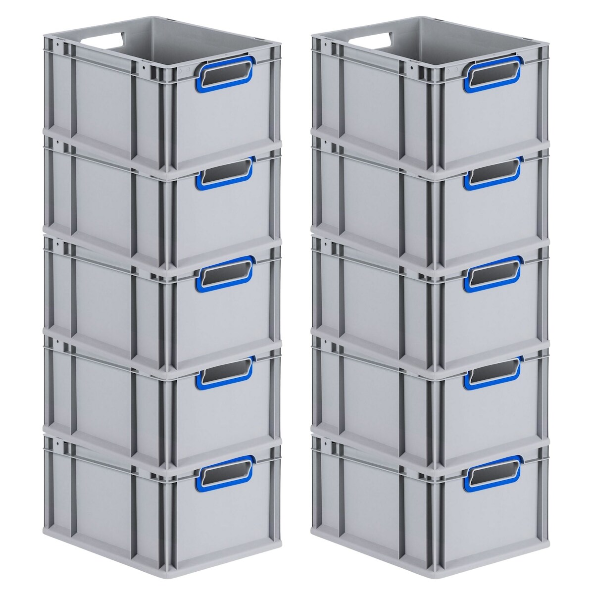 PROREGAL 10x Eurobox NextGen Color | HxBxT 22x30x40cm | 20 Liter | Griffe blau offen | Glatter Boden | Eurobehälter