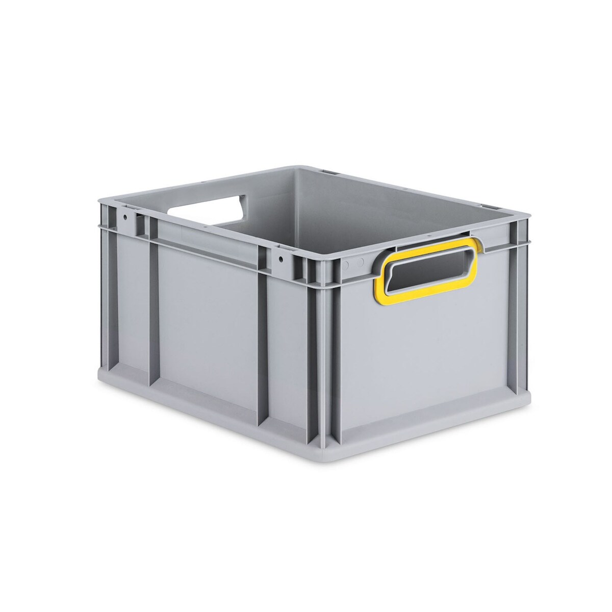 PROREGAL Eurobox NextGen Color | HxBxT 22x30x40cm | 20 Liter | Griffe gelb offen | Glatter Boden | Eurobehälter, Transportbox, Transportbehälter