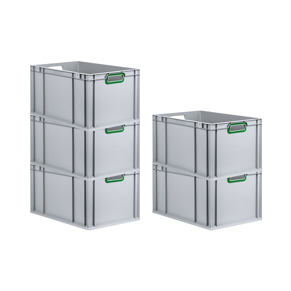 PROREGAL 5x Eurobox NextGen Color | HxBxT 22x40x60cm | 65 Liter | Griffe grün offen | Verstärkter Boden | Eurobehälter