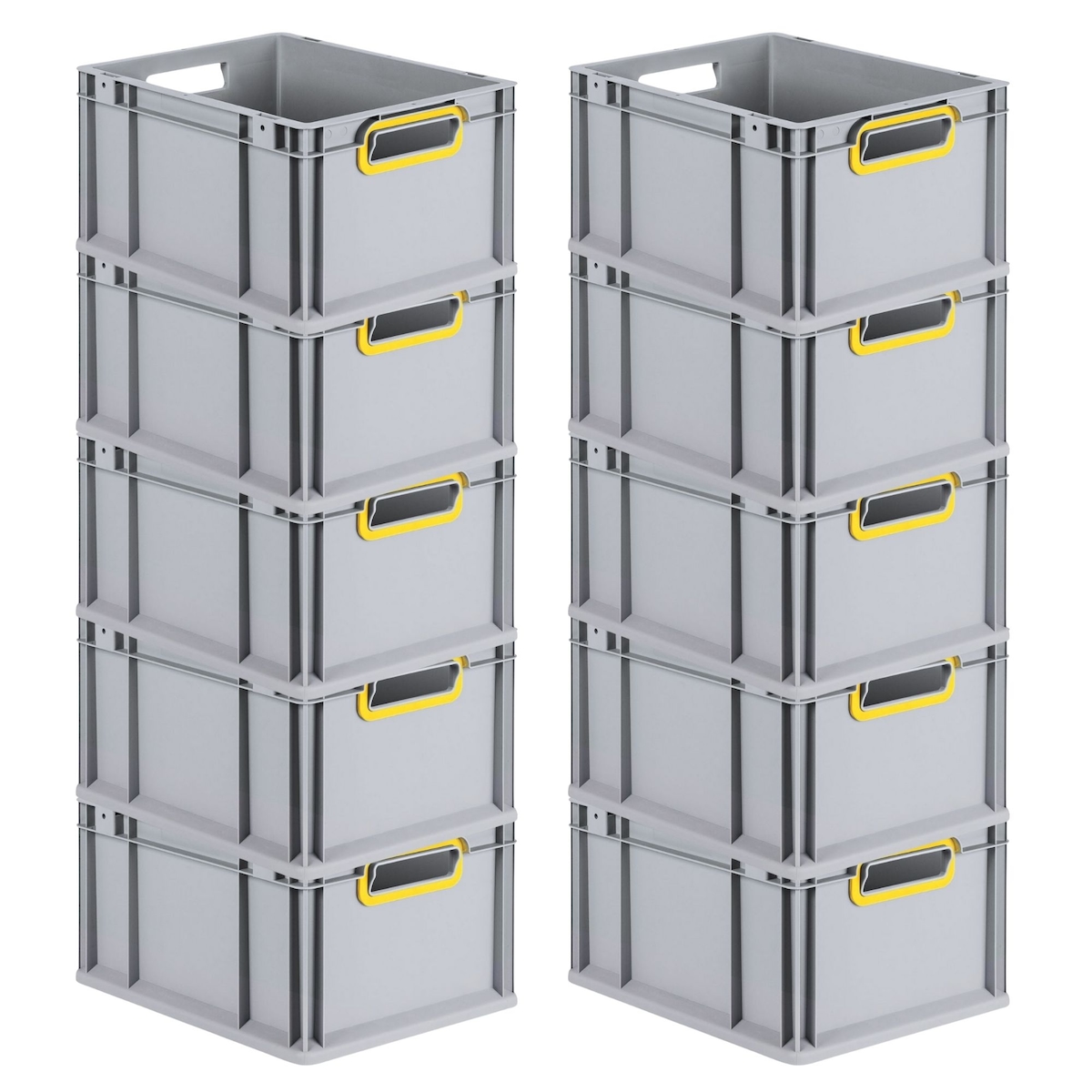 PROREGAL 10x Eurobox NextGen Color | HxBxT 22x30x40cm | 20 Liter | Griffe gelb offen | Glatter Boden | Eurobehälter