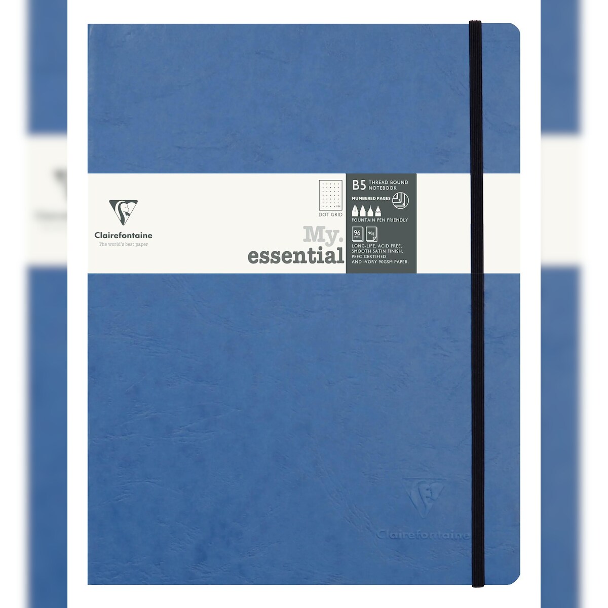 Clairefontaine 5x My.Essential Age Bag, Notizbuch B5 (19x25 cm) mit Fadenbindung, 96 Bl nummeriert, dot, Papier elfenbein 90g - Blau 794434C