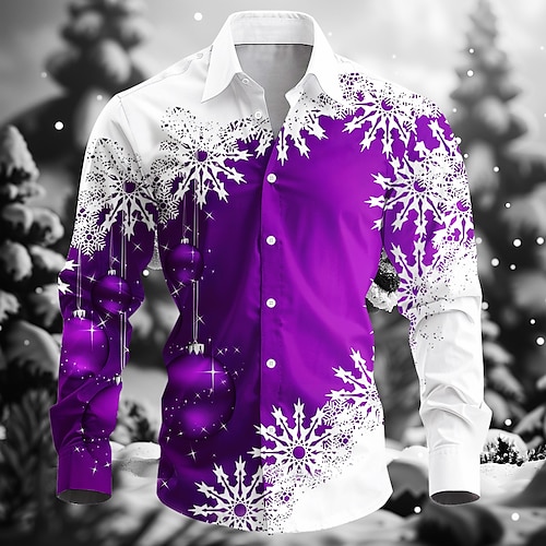 Natale Per uomo Fiocco di neve Camicia Designer Manica Lunga Resort Moda Casual Natale Feste Inverno Primavera Autunno Collo ripiegato Colletto a Camicia Cardigan con Bottoni Blu Rosso Viola Verde