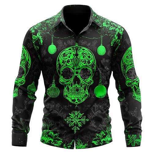 Per uomo Teschio Fiocco di neve Luci natalizie Camicia Camicia con Bottoni Manica Lunga Gotico punk oscuro All'aperto Ferie Estate Primavera Collo ripiegato Stampa 3D camicie con colletto Rosso Viola