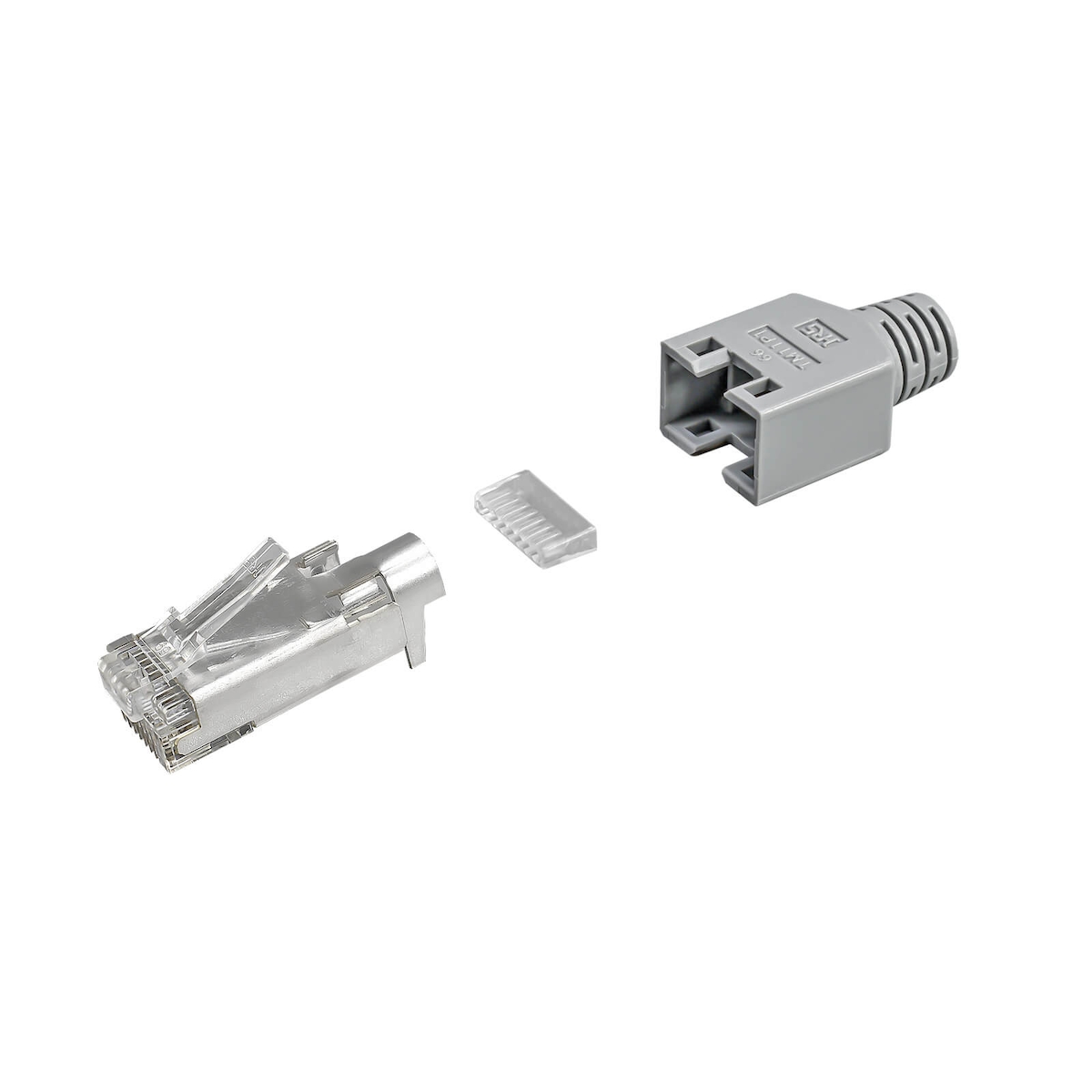 EFB-Elektronik Hirose TM11 Crimp Stecker Cat.5e RJ45 mit Knickschutzhülle und Guide Plate grau 50 Stück
