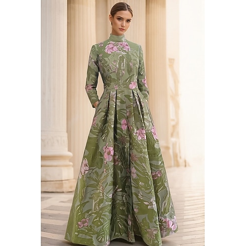 Linea ad A Lunghezza al pavimento Abito da Sera Elegante Vintage Manica Lunga Collo Alto Matrimonio Formale Nylon con Spacco Tasca