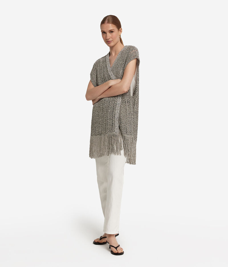 Falconeri Kimono traforato con paillettes Donna Naturale Sale/pepe Taglia S/M