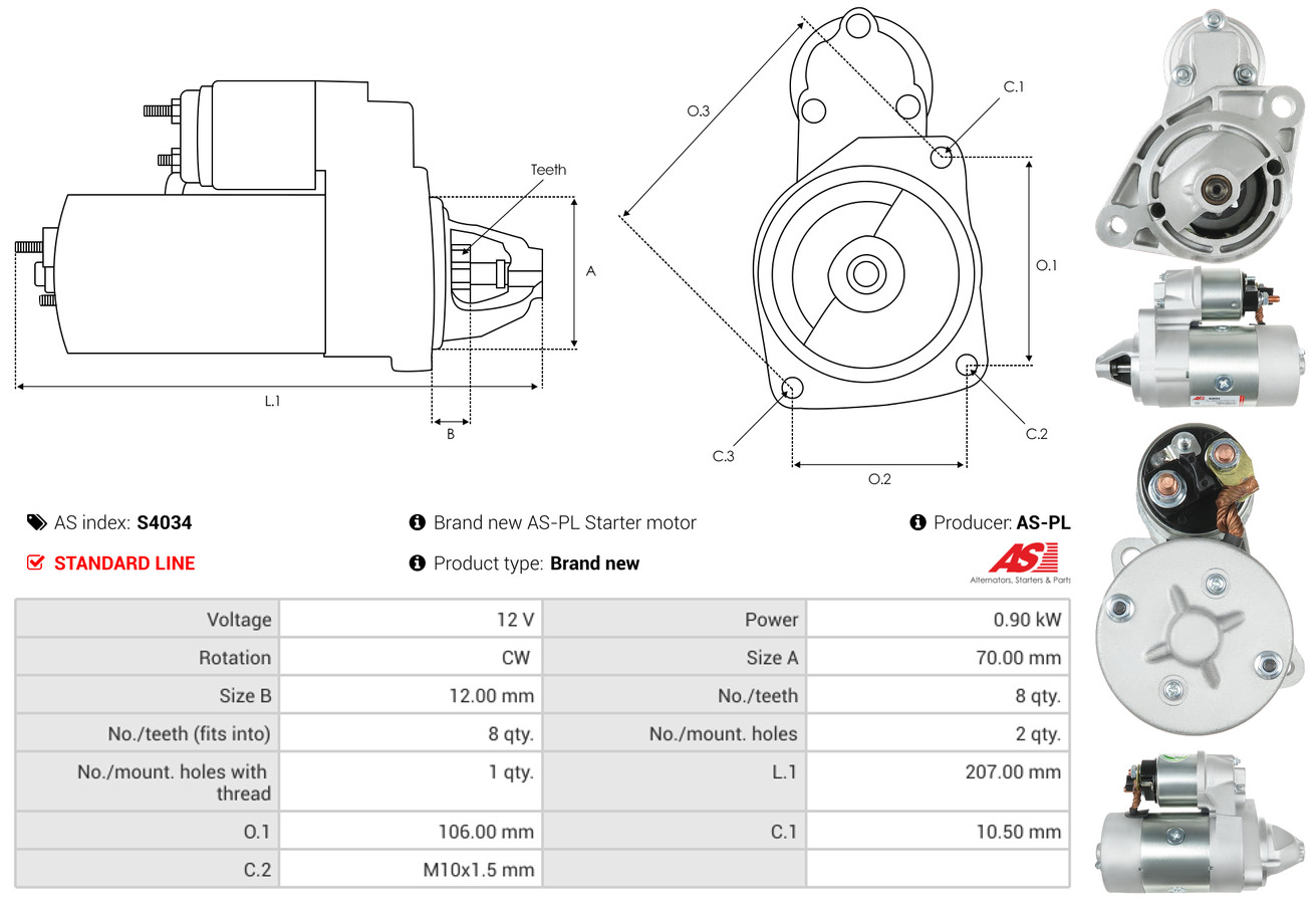 AS-PL Starter S3178S 12V für MITSUBISHI RENAULT MERCEDES-BENZ SMART NISSAN 23300-7970R 4539065400 23300-0557R