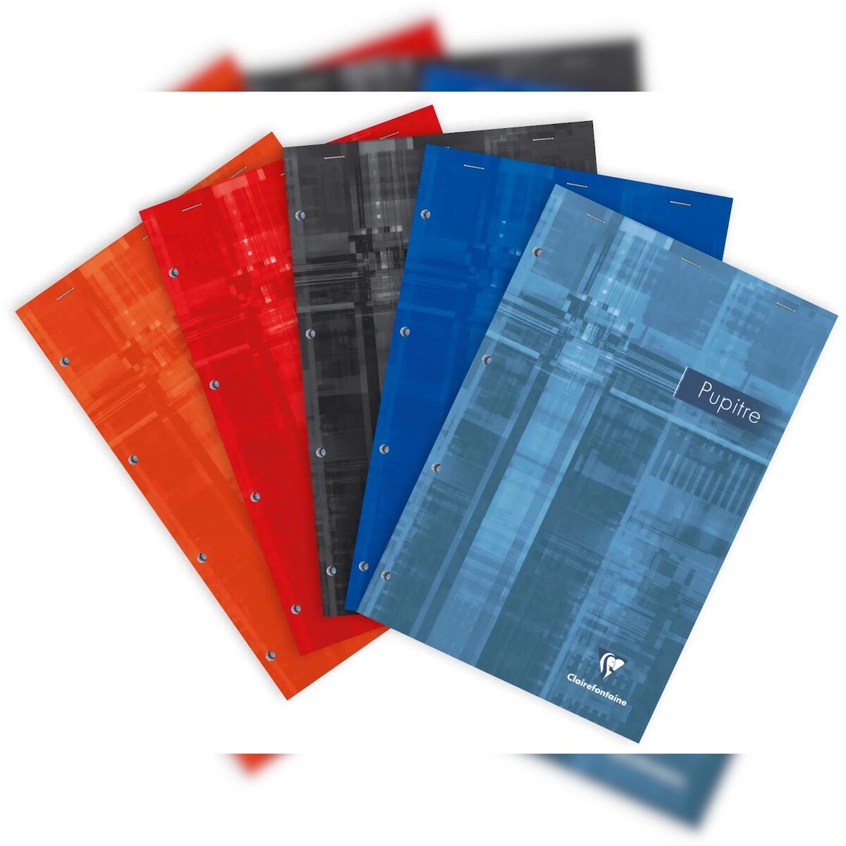Clairefontaine 5x Block Pupitre DIN A4+ kopfseitig geheftet, mikroperforiert, 4-fach gelocht, 80 Blatt 90g, kariert - Sortiert 66132C