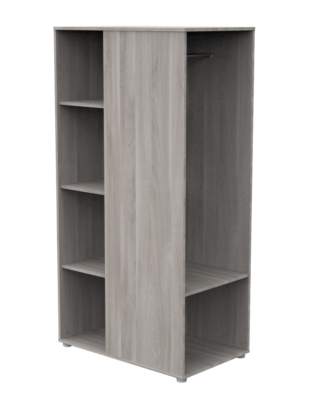 Mobile contenitore con ripiani e spazio per appendere in legno